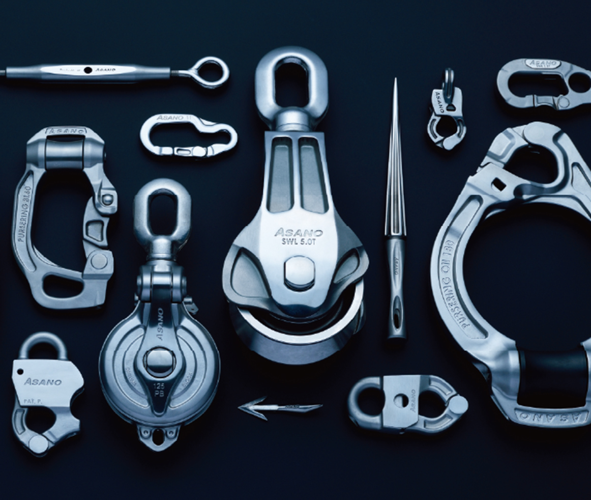 滑車は海上・陸上を問わず必要とされます。実用性の高い形状設計、高い強度、使用時を考慮した機能性。こだわりの詰まった大小さまざまなバリエーションを展開しています。