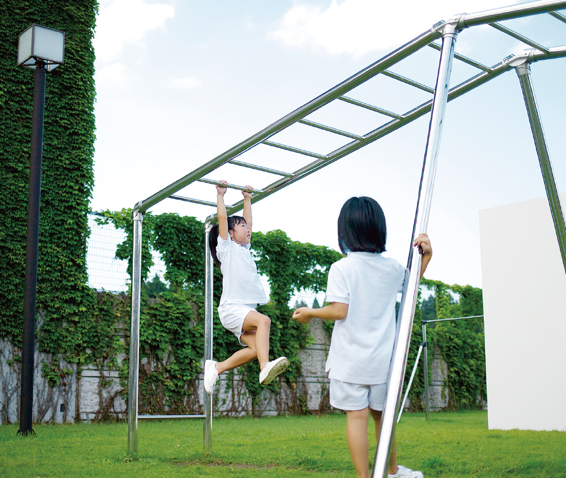 塩害に強く、長寿命が期待できるステンレス材はブランコ、ジャングルジムなどの遊具でもその真価を発揮します。子どもたちが楽しく安全に遊べることを考えた安心設計です。
