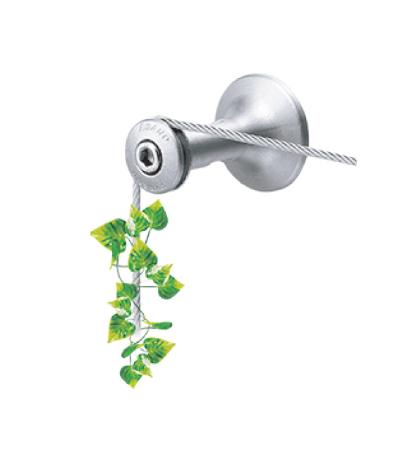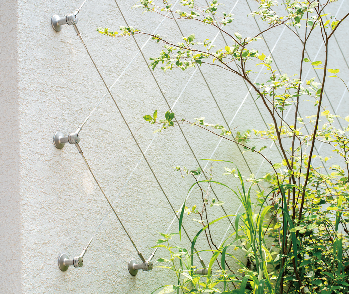 深刻化する地球温暖化の課題解決を都市緑化の角度からサポートする壁面緑化。独自性の高い金具とワイヤーの組合せが設計プランの自由度を高め、緑化面積拡大に貢献します。