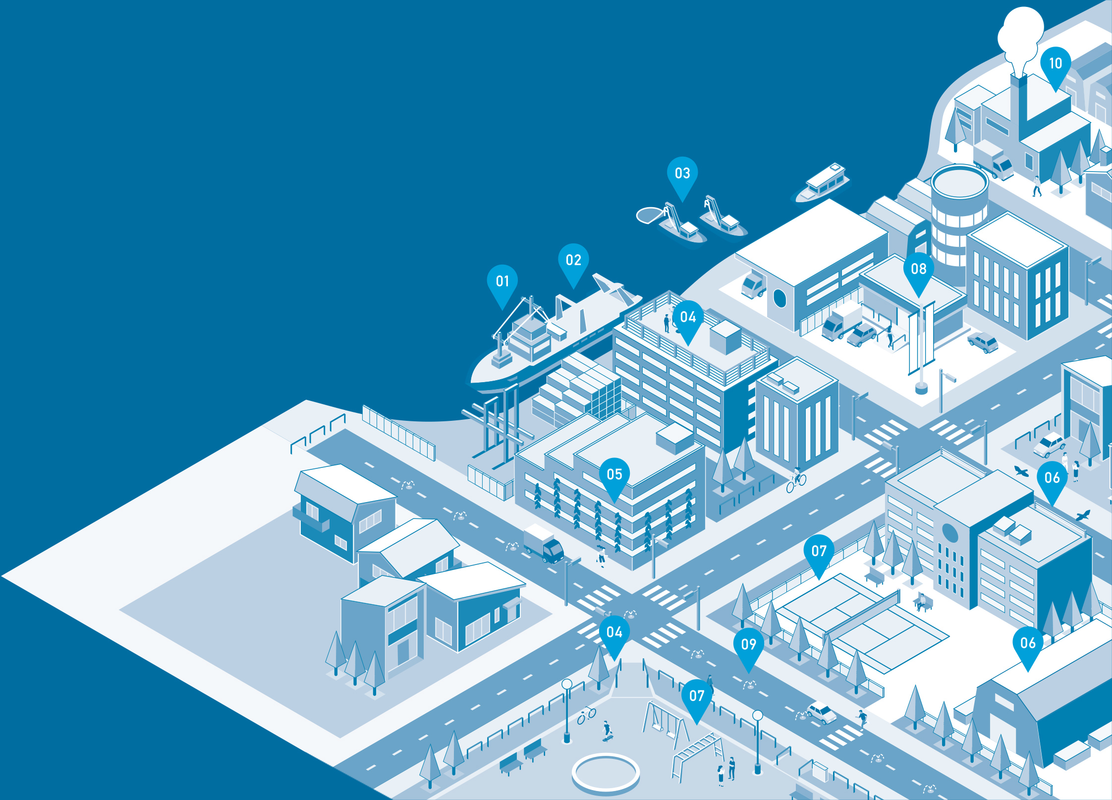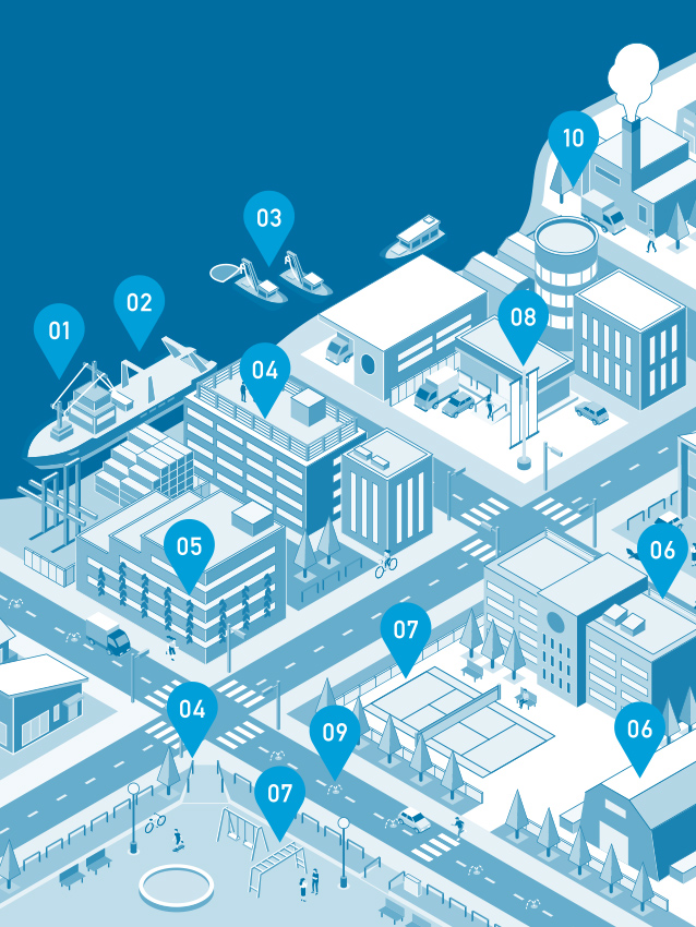 海も陸も。ステンレス製品の専門メーカーとして漁業・船舶向け製品の企画・開発から、建築・土木まで多種多様な製品を展開。ステンレスの強みを活かした多彩なアイテムは、身近な街の中にあります。