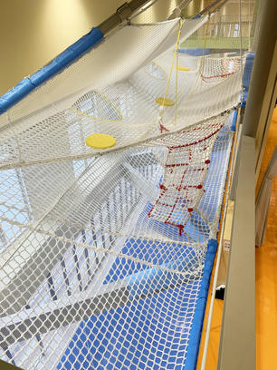 - 新潟県三条市の「三条文化体育館」内にある、ネット遊具の連結部分に使用されている各種ステンレス連結金具。