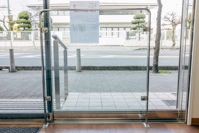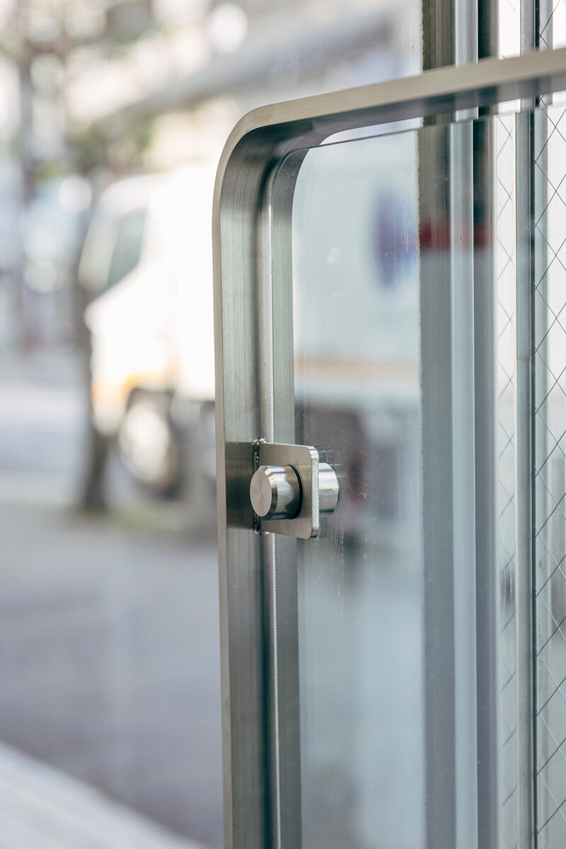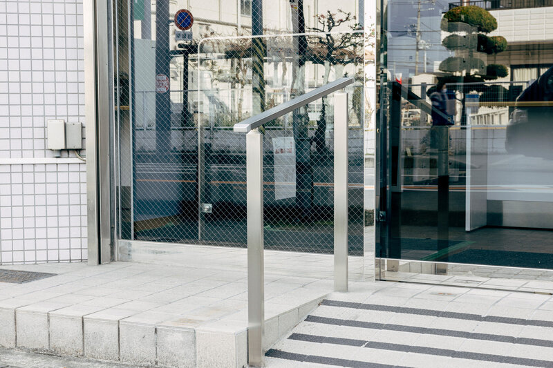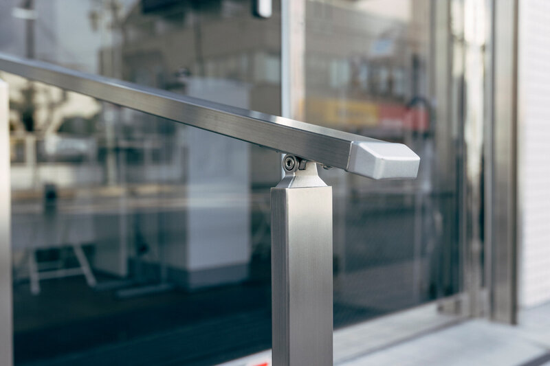 ステンレス手摺 自立型「AR-Quick Kタイプ」、自動ドア防護柵「AK-PG」コープ宅配ステーション白鳥 (京都府)