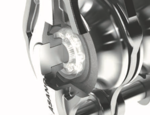 本体強度のアップを図るためシーブピン受け部を幅広く設計。