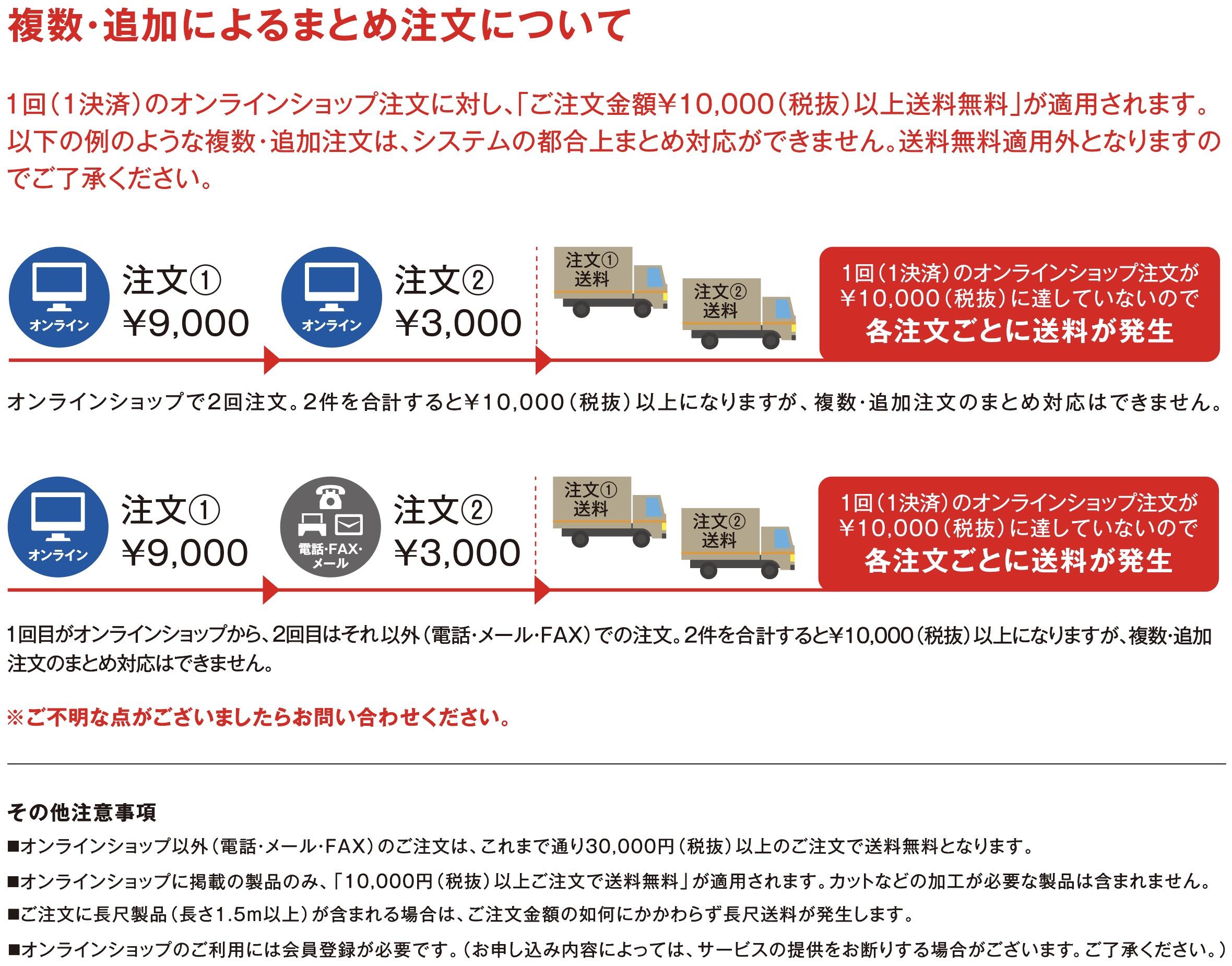 オンラインショップ 送料無料ライン¥10,000へ変更に伴う注意事項