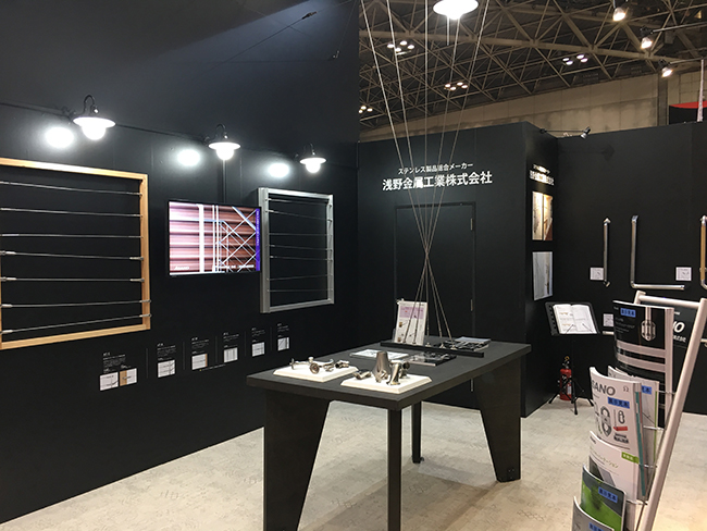 登場した新製品ステンレス製フラットバー手摺「AR-FB」や「自在パッドボルト」もご覧いただけ