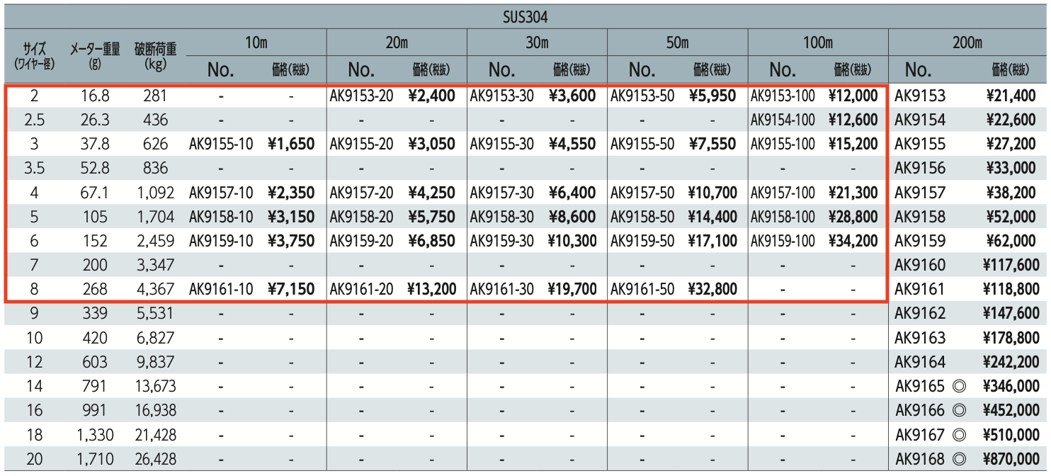 ●ステンレスワイヤーロープを10m、20m、30m、50m、100mなどに予めカットした状態で販売を開始しました。ご使用の目的や現場によって必要な長さをお選びください。