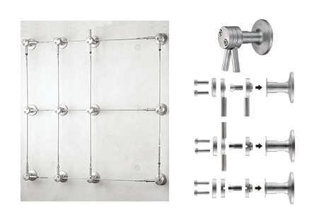 2ウェイ以上の場合は、他のタイプよりもベース金具を数多く壁面にアンカー施工する仕様となります。比較的、システム全体の使用荷重を多く設定することが可能なラインアップです。