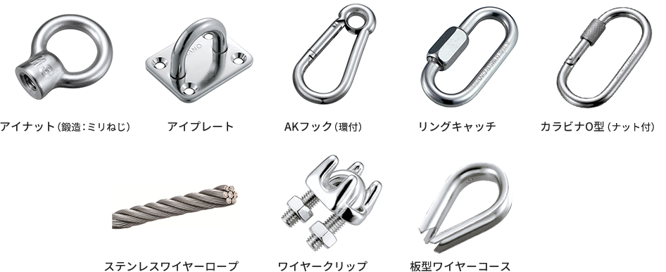 上記のワイヤーロープと組み合わせることにより使用シーンも広がります。