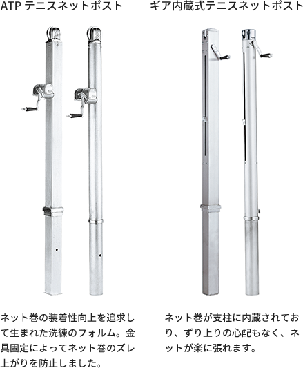 滑車部、ヘッドは耐久性・耐候性に優れたオールステンレス製。突起の少ないスマートな形状で、テニスコートの景観にマッチします。